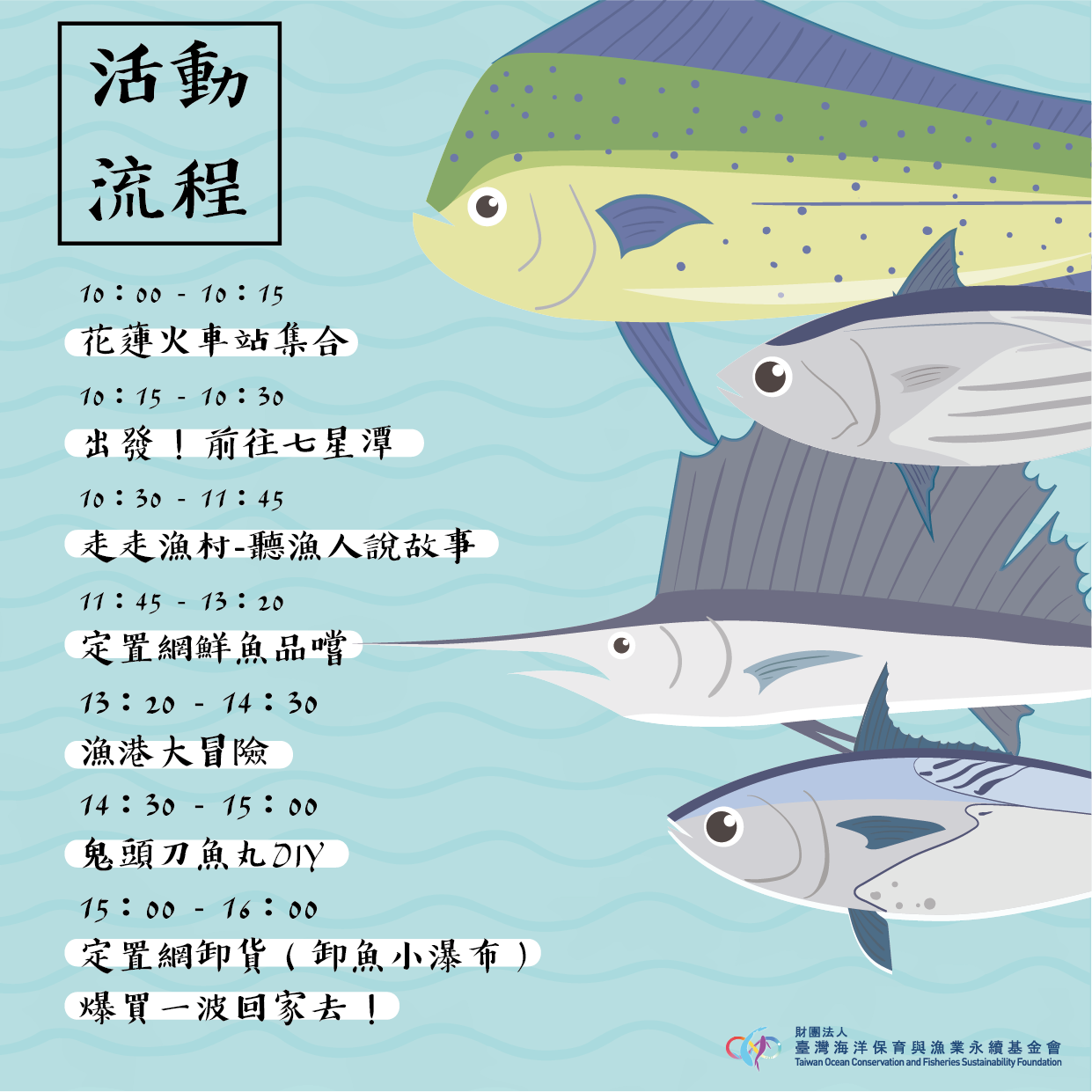 下午則是這次的私房行程,來到花蓮漁港,踏上漁船,站在真正的鏢魚台上當個鏢魚手!認識港口這些長得有點像,卻有特殊功能的漁船,挑戰一下冷凍庫有多冷!認識漁貨保鮮的秘密!別忘了,來漁港就是要吃海鮮,這次海鮮自己做,上手做鬼頭刀魚丸!