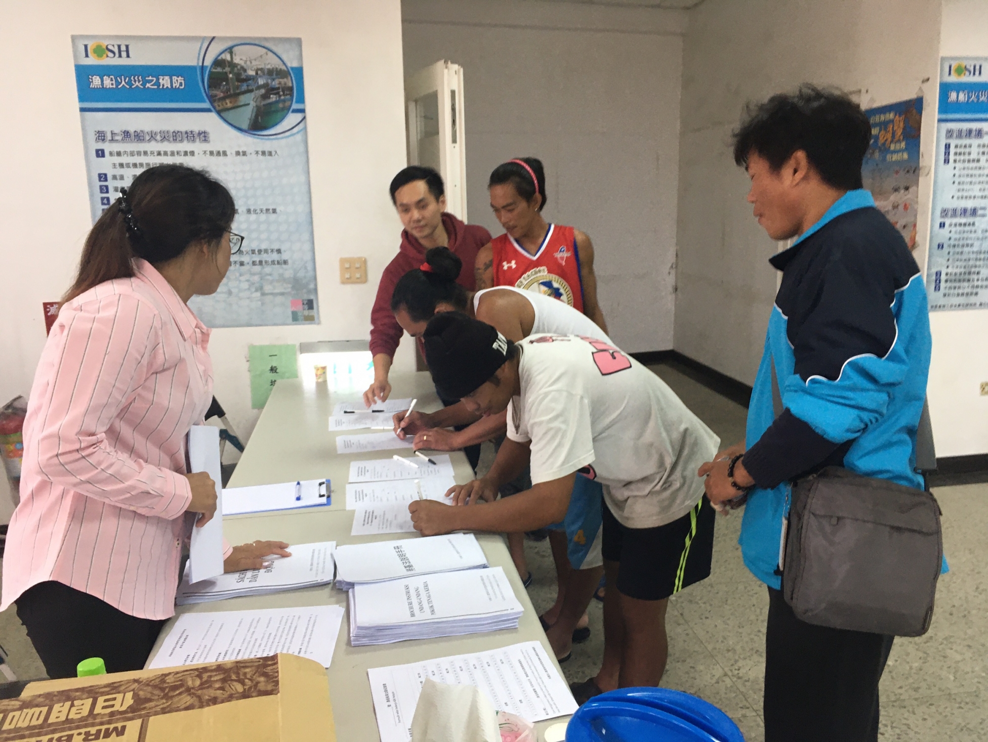 本會為輔導各漁船合乎勞動基準法的規定,編篡勞動基準法說明手冊,透過簡單易懂的文字與案例說明,並翻譯為三種語言協助外籍船員了解本國勞動基準法中工時、休例假與勞資會議之相關規定,於各主要漁港舉辦勞動基準法與勞資會議說明會,希望透過討論、對話之方式協助船主(長)釐清問題與研擬解決方式。